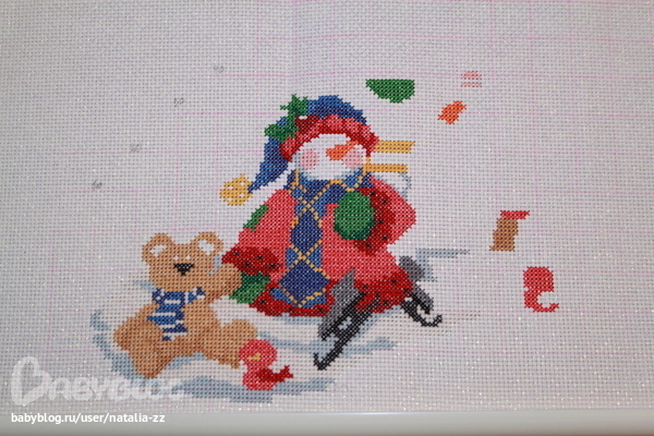 Ток щас увидела,что канва с люрексом. Дочка-снеговичка готова)))