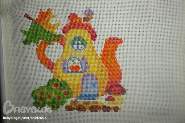 вышился вот такой домик на осенную тематику, остался бек и еще хотела спросить надпись ОСЕНЬ вышивать или нет?