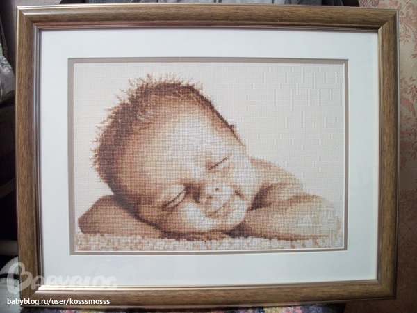 Вот что не нравится мне в вышивке, так это лобик у малыша, как-то нитки не очень продуманы...