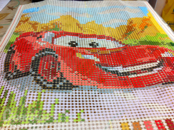 Долгострои и вышивальные процессыВышиваю подушку в подарок сынишке на день варенья - он просто фанатеет от Тачек (как и многие мальчишки)!