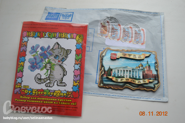 Получила!!!Получила!!! Получила я магнитик!!!!!! и еще красивую вышивку крестиком!!!!!!! от прекрасной девушки Регины