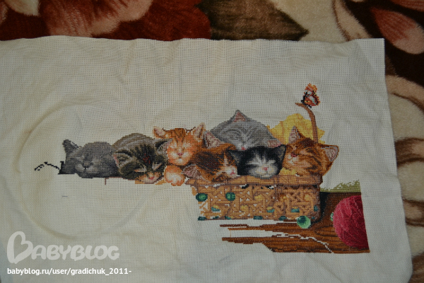 уже довышивала всех котят и корзину, остался фон))))лучше порадую вас сразу готовым вариантом