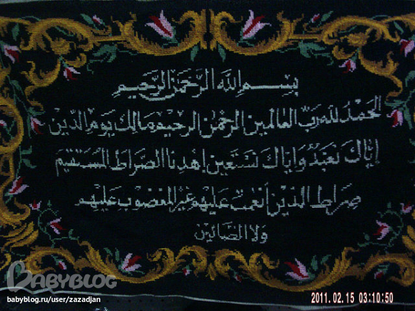 А арабскую вязь ты сама сначала прорисовывала на ткани или есть такая канва? Я просто боюсь ошибиться - в арабском не сильна, а так хотела бы например вышить Аллах на арабском.