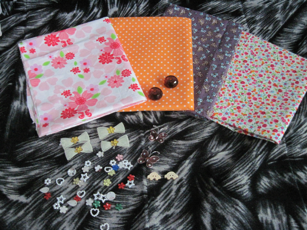 Рукодельная часть посылочки: тканюхииииииии!!! Я такая классненькая мелочюха, я так люблю все эти причендалики, честно скажу, таких у меня нет! Буду творить шедевры)