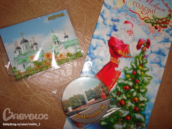 ...пришли мне)))один из Кимовска с открыточкой от Регины)а второй из Москвы,но с Муромом)))
