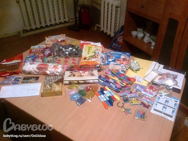 П.С. Раньше не получилось отправить,так как не все было подготовлено(наполовину),а потом я лежала в больнице,вот только на неделе приступила к сбору посылочки...)))