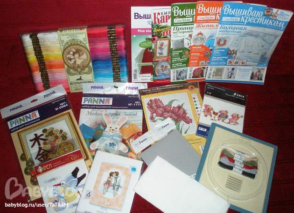 В итоге за месяц успела нахомячить и сама не заметить: 3 журнала "Вышиваю крестиком" (есть даже старые номера, купленные на развале), 1 номер "Вышивка крестом", 1 номер "Вышитые картины", 5 наборов с вышивкой крестом, 1 набор, где еще бисер присутствует, 2 варианта канвы, наборчик (канва, иглы, мулине), который прилагался к "Вышивка крестом", набор из 100 шт. мулине... конечно кое-что мне досталось от Новогодней Феечки, но этот хомяк хорошо поработал и еле-еле сдерживается! Уже только сдерживают финансовые возможности... Это еще я помалкиваю сколько всяких журналов с вышивкой и схемами было скачено в электронном виде!
