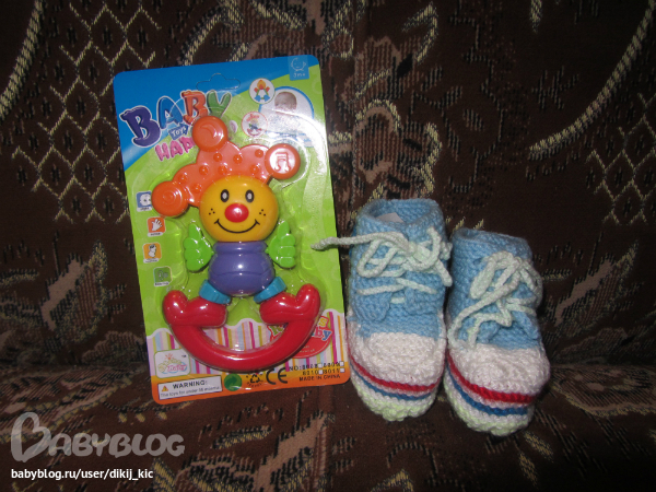 А вот такую красоту Оля сделала для нашего будущего малыша. Это была моя хотелка, теперь мы родимся и будем щеголять всем на зависть в ботиках!!! И погремушка. Это наша первая погремушка у малыша и я уверена, что она станет самой любимой!!!!