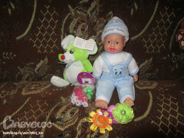 Анютке пупс-хохотун, она с ним носится по квартире, мышка была вручена на хранение папе))))))