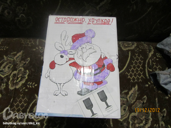Коробка была спрятана на шкаф, забарикадирована елкой. Муж еле достал вечером, чуть елоку не перевернул)))))