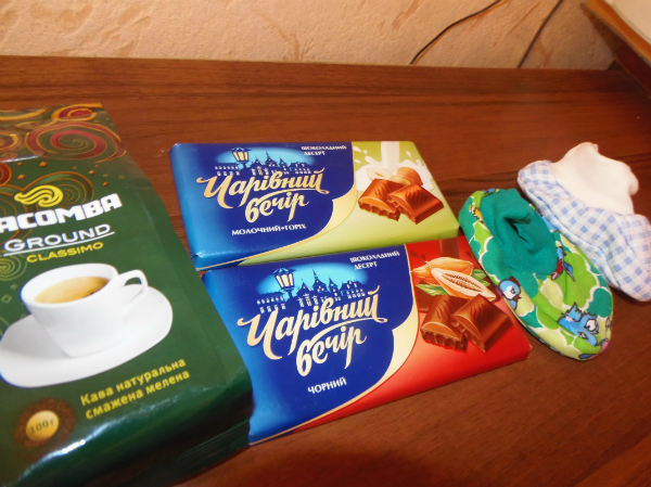 кофе и шоколадки нам с папой) и 3 пинеточки будущему чаду-1 из которых Виталина наперла на себя и отказалась снимать)