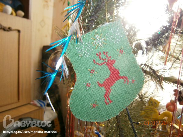 первое на что я обратила внимание, это был замечательный новогодний сапожок, который занял достойное место на нашей елочке.