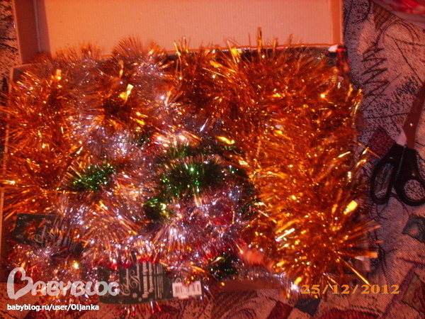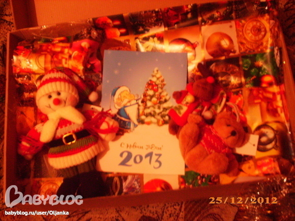 Дождик, снеговичка, медведика, оленя и открыточку мы достали, а всё остальное жило на шкафу до вечера 31 декабря... Перед тем как идти в гости мы вскрыли красивую бумагу и обнаружили там...