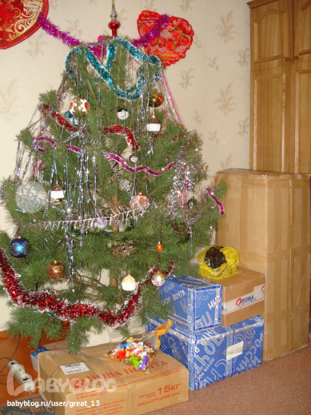 А это наша ёлка с подарочками от Деда Мороза (коробочка от феечки (на фото под желтым пакетиком)дотерпела до утра 1 числа)