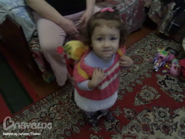 А это угадайте кто? ))))) Самый главный в нашей жизни человечик))))) мадам сама распечатывала свой подарок)) и поэтому нормально сфотать мне его не удалось-попробую описать)) Юбочка из "травки" (уже на кнопе))) И рюкзак-божья коровка за плечами. Натусь, юбочка очень красивая!!! А еще-идеально подойдет нам под жилеточку весеннюю, она тоже их "травки" )))))))))Доча будет самая-самая!!!!!