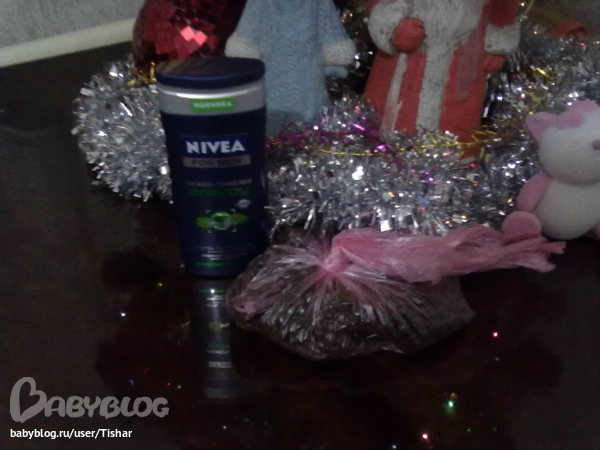 Это подарочек нашему папе- гель для душа и пакетище (с полкило точно!) кофе в зернах. Папа когда увидел, сказал "ОГО" ))))))))) Он кофе-маньяк унас)))))) как и я))))))
