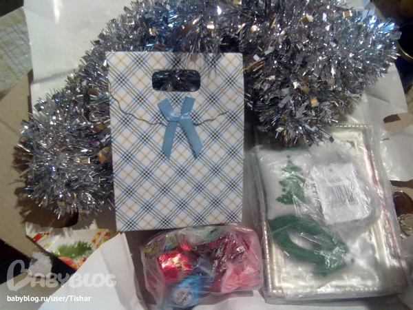 С разрешения Феечки мы ее открыли и один сверточек открыли. А остальное, благодаря свекрови-было сохранено в целости до самого праздника.......