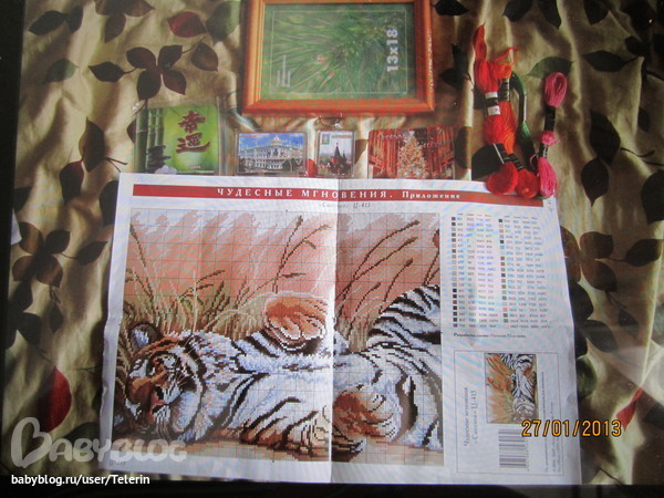 Ну и в посылочке были подарочки от девочек=)))Магниты уже висят на холодильнике, брелок (или как там он правильно пишится) на ключах . Ниточки и тигра пока в норке ждут своего часа. Ну и рамочка тоже ждет своей картины=)))