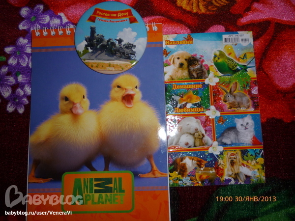 натали, Простите, дни рождения были, вовремя отчитаться не смогла. С магнитиком были и подарочки))) Большой блокнотик и наклейки. Наклейки уже наклеены))) Блокнотик уже отобран у меня, я так себе его хотела оставить, да дочь успела взять))) (ладно хоть сфотографировать дала))