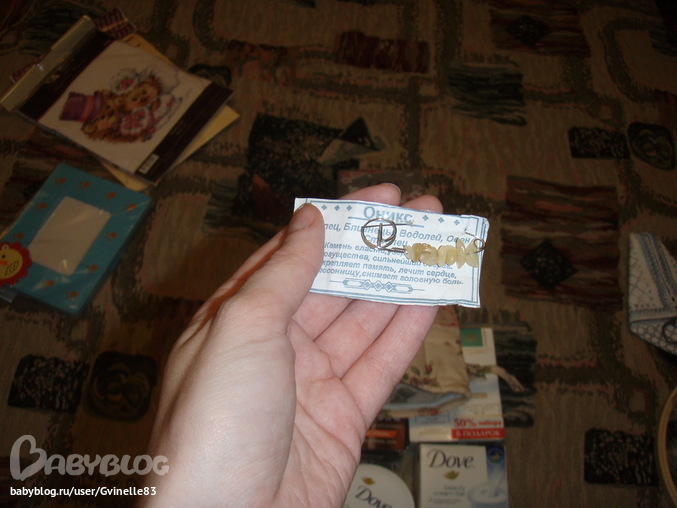 и кстати - она не пустая) .... канандаш для глаз, блеск для губ, низка (я так понимаю) янтаря - уже приспособила под браслет - , совершенно обалденная булавка с ониксом (оберег)