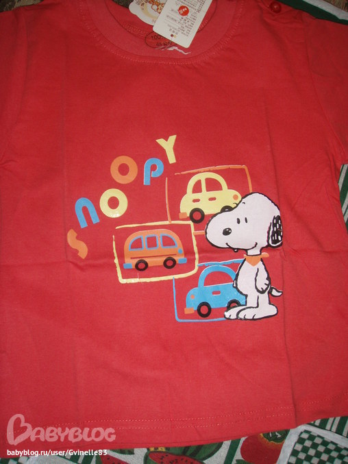 Вот смотрите, какая футболочка - с машинками и клевым песиком! (на модели сфотать не удалось - примерить не дал, только приложить)