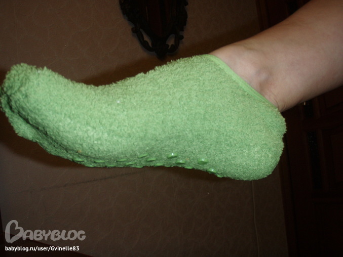 А это - мой лапсик в новом носочке. Носок оборудован резиновыми нашлепками-тормозами для пущей устойчивости. Открою секрет - по дому я хожу ис-клю-чи-тель-но в носочках, так что феечка - настоящая феечка!!!!! (Эх, резиночки слышно - шлеп-шлеп-шлеп - подковали эльфа!)))))