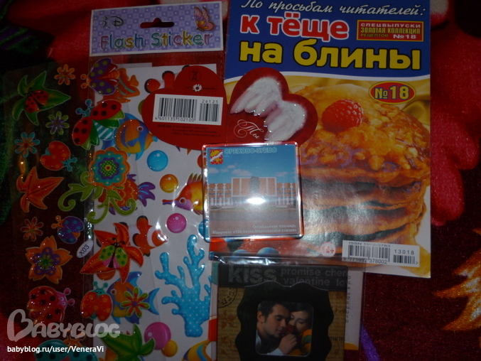 Фоторамка на магните, кулинарный журнальчик, наклейки и валентинка (давно валентинки не получала, очень приятно)
