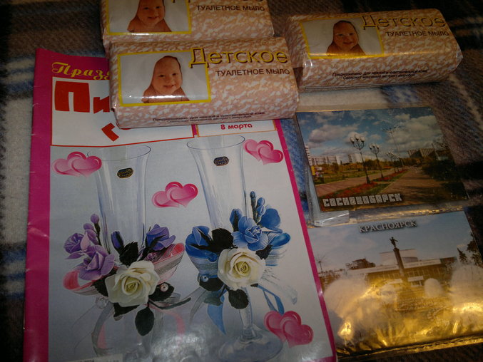 Это был междусобойчик. Два магнита мне прислал Елена и три куска детского мыла, что нам сейчас так необходимо-мыло летит на ползуны!