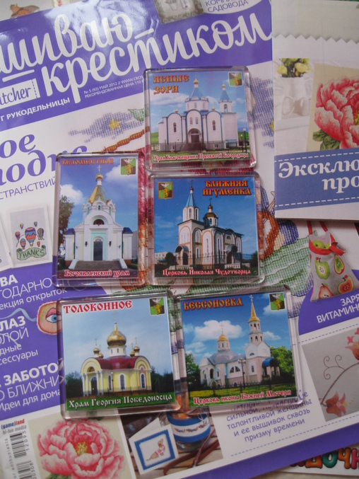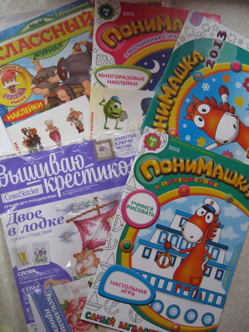 Это журналы с наклейками для сына(а "Корпорация монстров"-мой любимый мульт,так что и для меня тоже)))Магниты и огромный сюрприз в виде журнала "Вышиваю крестиком"!!!Более подробно о самых интересных для меня страницах в нем расскажут фотки