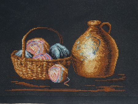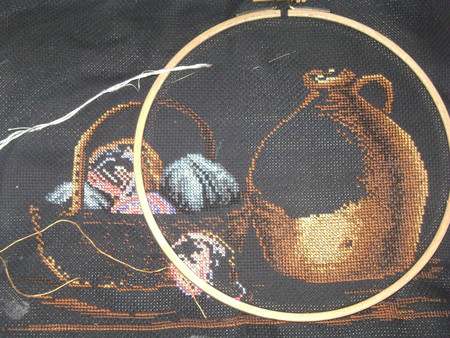 Чесно говоря очень много одинарным кусочков, а что касается черной канвы я много шила на черном, надо много света пому как глаза устают