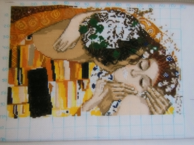Самое смешное то, что я думала, что после Афремова, Климт будет быстро вышиваться. Но получилось так, что в Климта тоже много оденочег :(