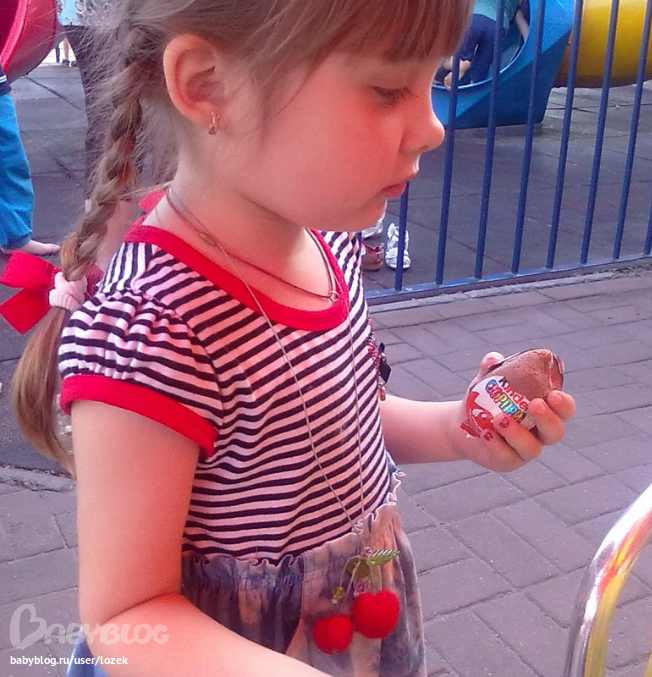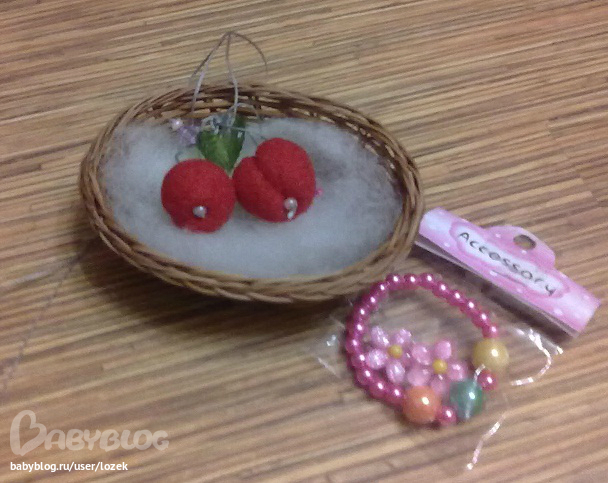 Это вкусная подвеска-вишенки, вырощеные Юлиными умелыми руками, киндер тоже из посылки, хотел быть сьеден еще на почте, но я уговорила пойтипомыть руки, а потом есть)))