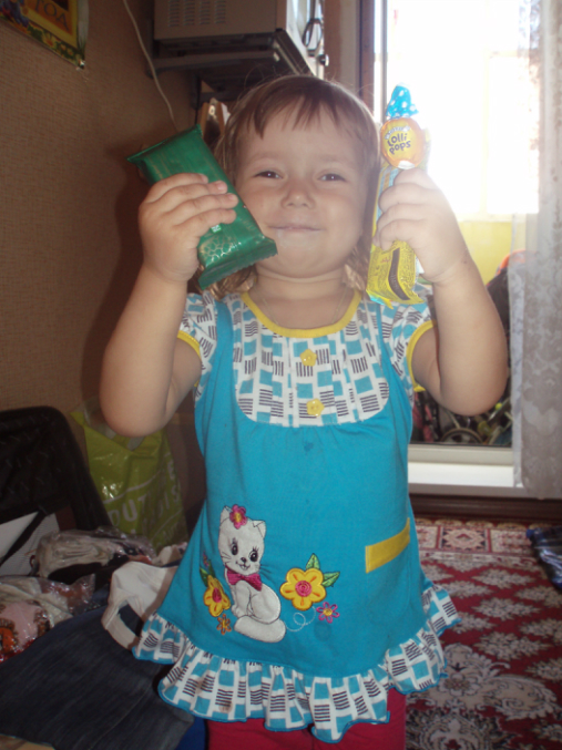Доченька моя пищит от удовольствия, что столько сладостей сразу прислали)))))))) (на заднем плане еще неразобраные чемоданы)))))))
