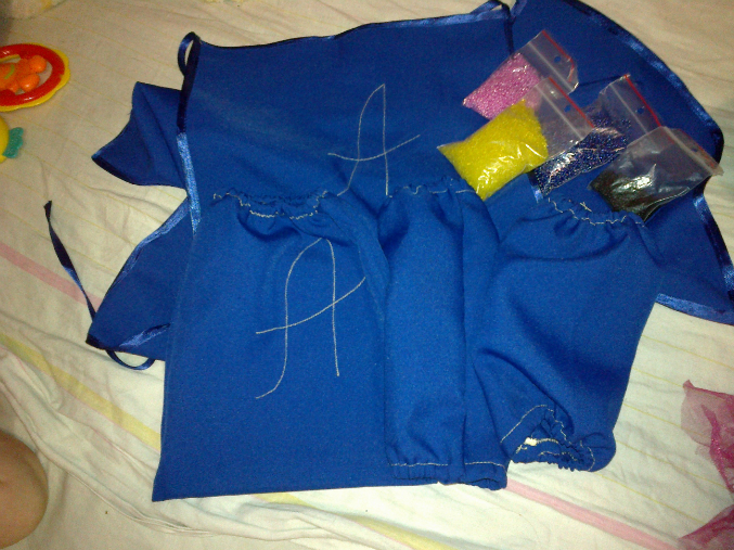 Оля сшила для Антошки фартук, нарукавники и все это в именном мешочке. Антон приедит в понедельник от бабушки, вот это радости будет. И самое большое сокровище-бисер. Очень много бисера!!!