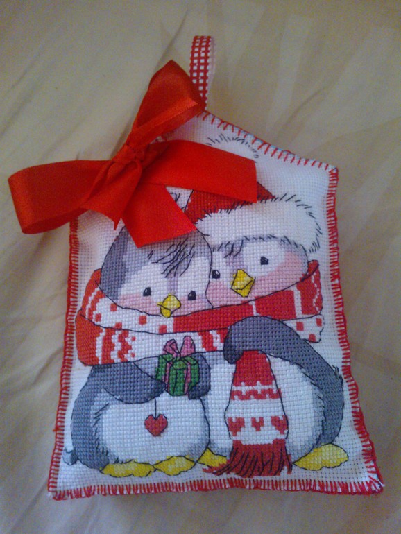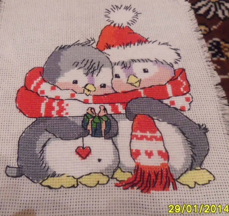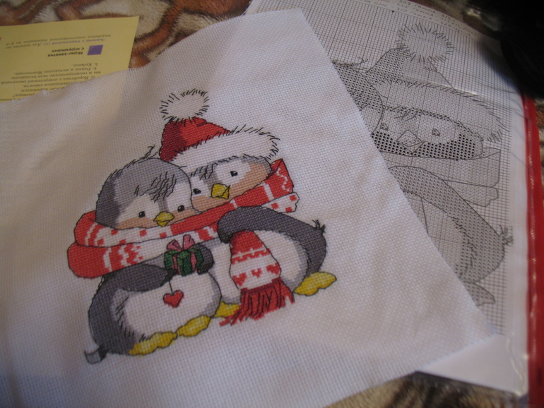 Кстати, хочу поделиться. Если кому-то захочется вышить серию про пингвинчиков, у Татьяны Марчуковой есть две схемки про мальчиков-пингвинчиков, очень похожих на нашего:
