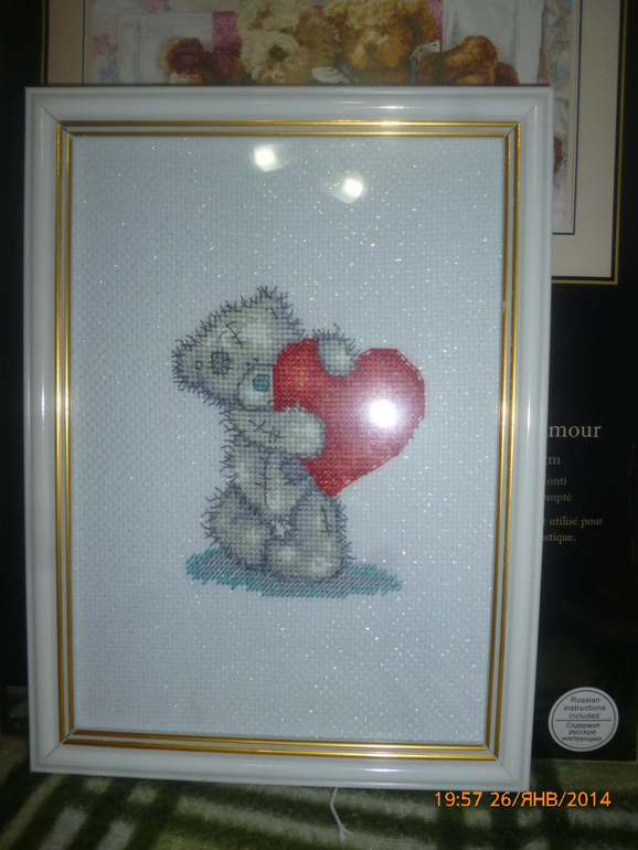 Всем привет! Мне тоже есть чем похвалиться! Доделала мишку вот он: я от него в диком восторге и он теперь моя аватарка))))Доделала подушку: Снеговичок чуток продвинулся - было: стало: А вот мои запасы: наконец то пришли мои мишки от Дим Вот здесь в комодике лежат мои всякие вышивально - вязальные штучки даже один ящичек покажу)))) а вот еще мои запасики)) муж возил меня в Воронеж после больницы развеяться и сказал ни в чем себе не отказывать, я себе и не отказала: А еще он завтра должен будет забрать один набор, здоровищий правда, аж страшно, 65х48. Завтра могу отдельным комментом выложить. Фух, вроде все)))))