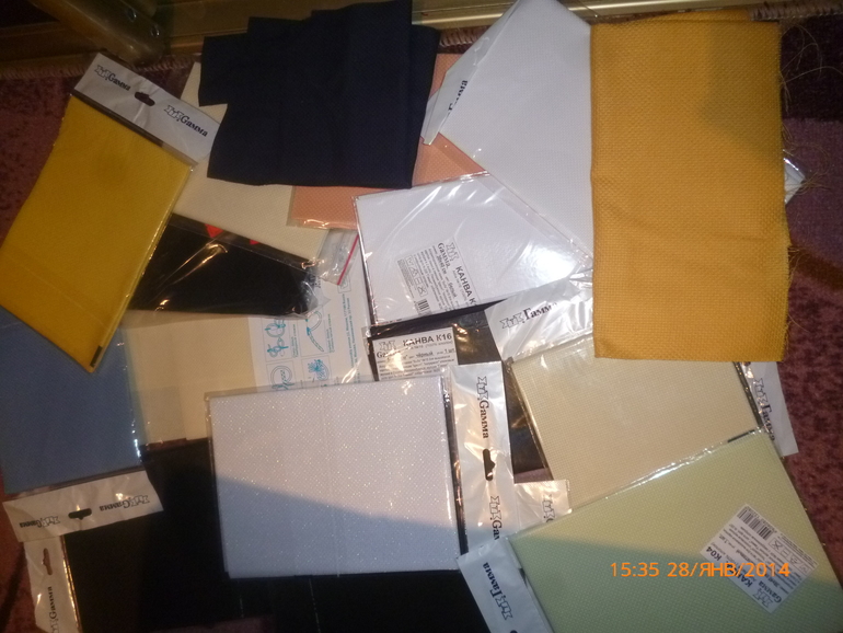 спасибо, я раньше не страдала канвоманией))), но как то мне нужно было что то вышить срочно, а у нас на районе канвы хоть разбейся не было и не было возможности съездить. И после этого муж сказал, чтобы канва дома была и по городу мы не гонялись за ней. А тут бац и Воронеж. А там канва прямо сильно дешевле, чем у нас, вот я и набрала. Но чувствую, что с люрексом надо было брать больше.