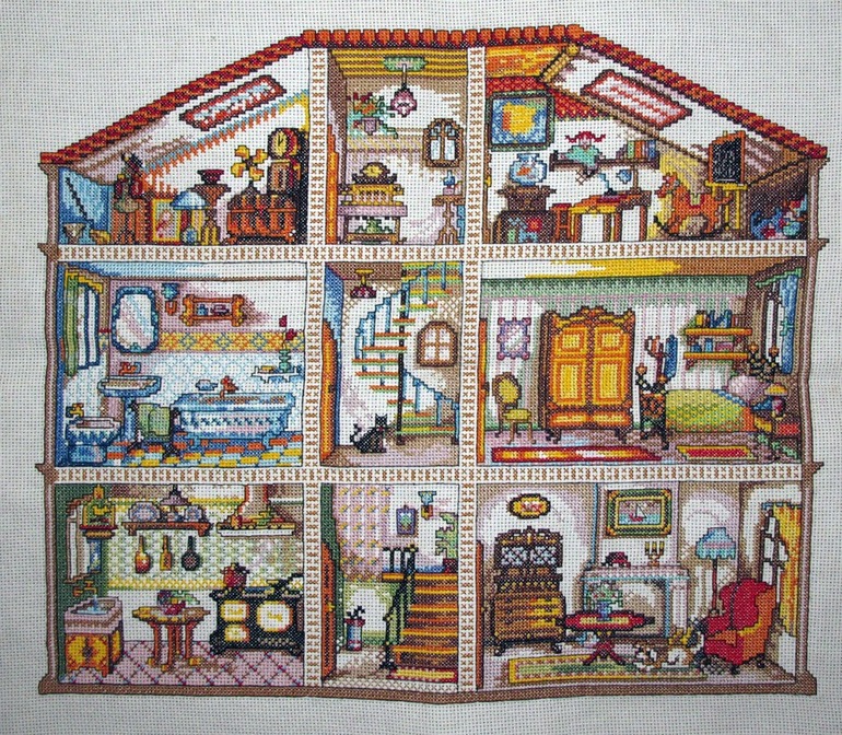 Спасибо=)) ооочень люблю все необычное и не покупное.... могу месяцами сидеть в инете и выискивать мне нужную вышивку..так и копится...их у меня МНОГО. Тяжко мне дается кукольный домик(много цветов, в одной комнате может быть один крестик - одним цветом....)