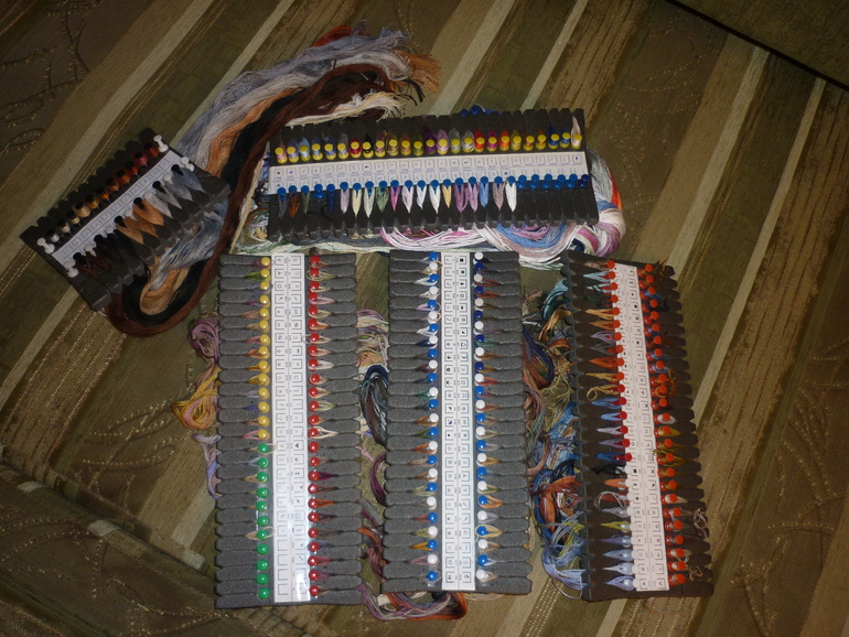 Не за что, там хороший сайт, мне муж и станочек сделал по мастер-классу от туда. А наматываю по 6 ниточек. Просто работы разные бывают, и в 2 и 3 и 1 вышиваю. Мне потом удобно их отрезать и на органайзер, а там уже подцепляю иголочкой сколько надо нитей и выталкиваю, быстро получается. Подготовка конечно не быстрая. У меня один тоже маленький органайзер, под небольшие работы, а в больших вообще по 2 больших обычно задействовано.