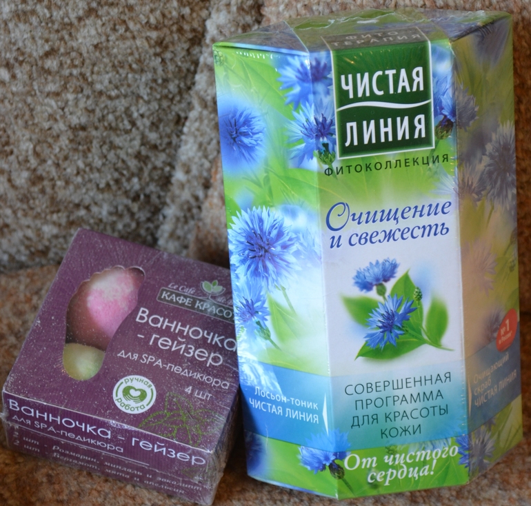 Моя любимая "Чиста линия" (Для души и тела))))) Сначала подумала, что крем для рук и немнооооожечко расстроилась (т.к. у меня его очень много...), и вдруг вижу, что это скраб и тоник для лица!!!! Йо-хуууууу!!!! Если скраб у меня ещё есть на донышке, то тоник как раз закончился!!!!! Я очень-очень рада такому подарку!!!