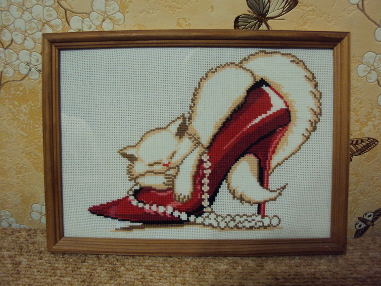 Посчитайте примерное количество крестиков и умножьте на 15-20 копеек))) прибавьте к этой сумме цену на набор, либо если это подбор то цену на канвуУ меня получилось 1000 рублей за работу, если брать 15 копеек за крестикНо реально продать ее сложно, т.к сюжет специфический...