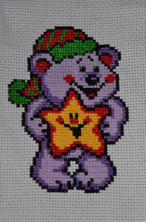 Начало положено!Но все же советую Вам подойти более серьезно к выбору материалов для вышивки — те же наборы с более проработанными схемами, канва (основа) не такая рыхлая — на ней и вышивать удобнее, и крестики выглядят ровнее и лучше!Удачи Вам!