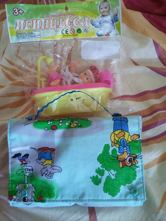 Первым делом, естественно, пришлось вскрыть пакетик для Полинки. Там нас ожидала милейшая сумочка и кукла: