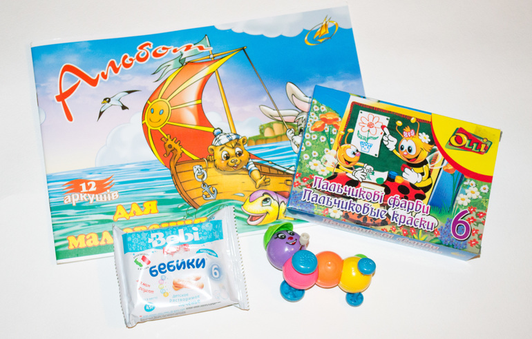 Для моего масика тоже презентик, пальчиковые красочки с альбомчиком, как раз на годовасие отпечатаем наши ручки и ножки))))вкусненькие и любименькие печеньки и "гусениКа", так я называю гусеницу, он ее сразу утащил. столько радости от новой игрушки, а когда "завод" игрушки заканчивается, нечет мне, мол, давай крути))))