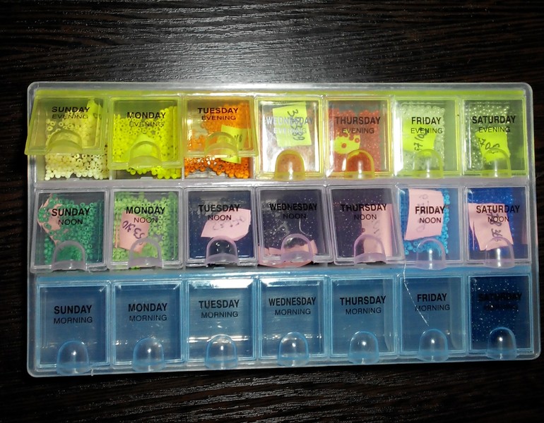 Где лежит бисер?с чего его удобнее брать?у меня есть контейнер ,но замучаться можно брать по одной бисеринке.....короче,интересует все!!!!