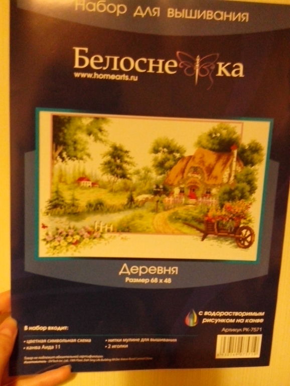 Я новичок в вышивании, до сих пор тренировалась на чём-то маленьком. А теперь купила набор Белоснежки "Деревня". Тут нигде не написано во сколько нитей вышивать. Только:
