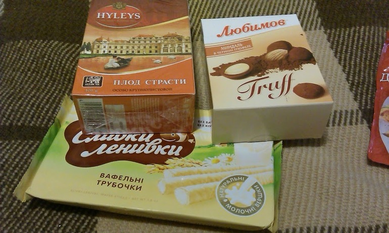 сладости и чай... вот еще раз удивляюсь, как можно угадатьс чайком... мы пьем только этотчайуже года три ( могу сфотать кучу банок из под него , использую под сыпучие)мой муж любит трюфеля ))) и потянул коробочку раньше чем я успела развернуться)) а вот сливки потянула доча. с визгом мама у тебя уже + 19 кг.. куда тебе сладкое))))))