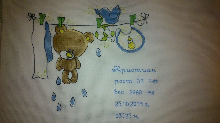 Вышивка крестом ГОТОВЫЕ РАБОТЫВышивалась быстро, легко, удовольствием!!! Метрика для малыша, которая уедет в подарок.