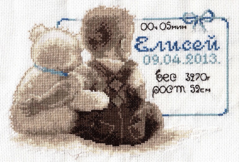 Буквально недавно увлеклась вышиванием метрики для малышей. Конечно же первую картину-метрику я вышивала для своего сына.