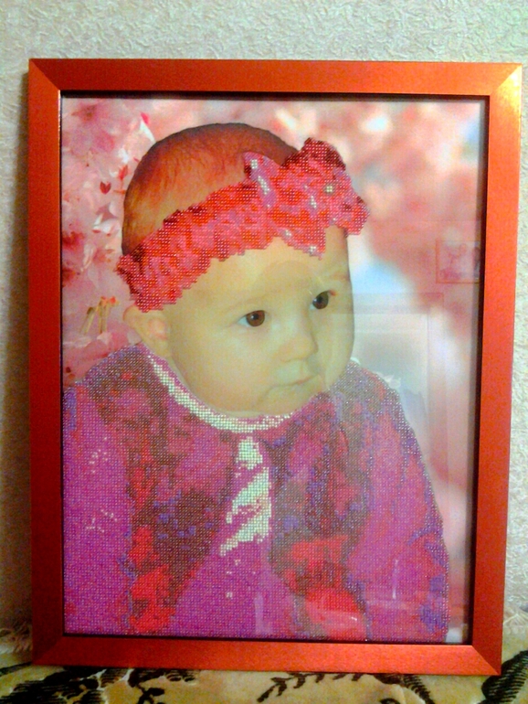 Заказывала в одноклассниках, на украине разрабатывали схему, да, здесь частичная вышивка, хотела полную зашивку, но с этими событиями на украине выбора бисера для лица мало, но и частичная отлично получилось, главное фото удачное подобрать.
